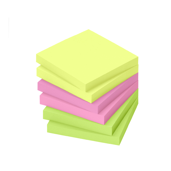 Notes Repositionnables A+B. Lot de 6 blocs de 100 feuilles 38x51mm en 3 couleurs ( jaune. vert. fuschia ).