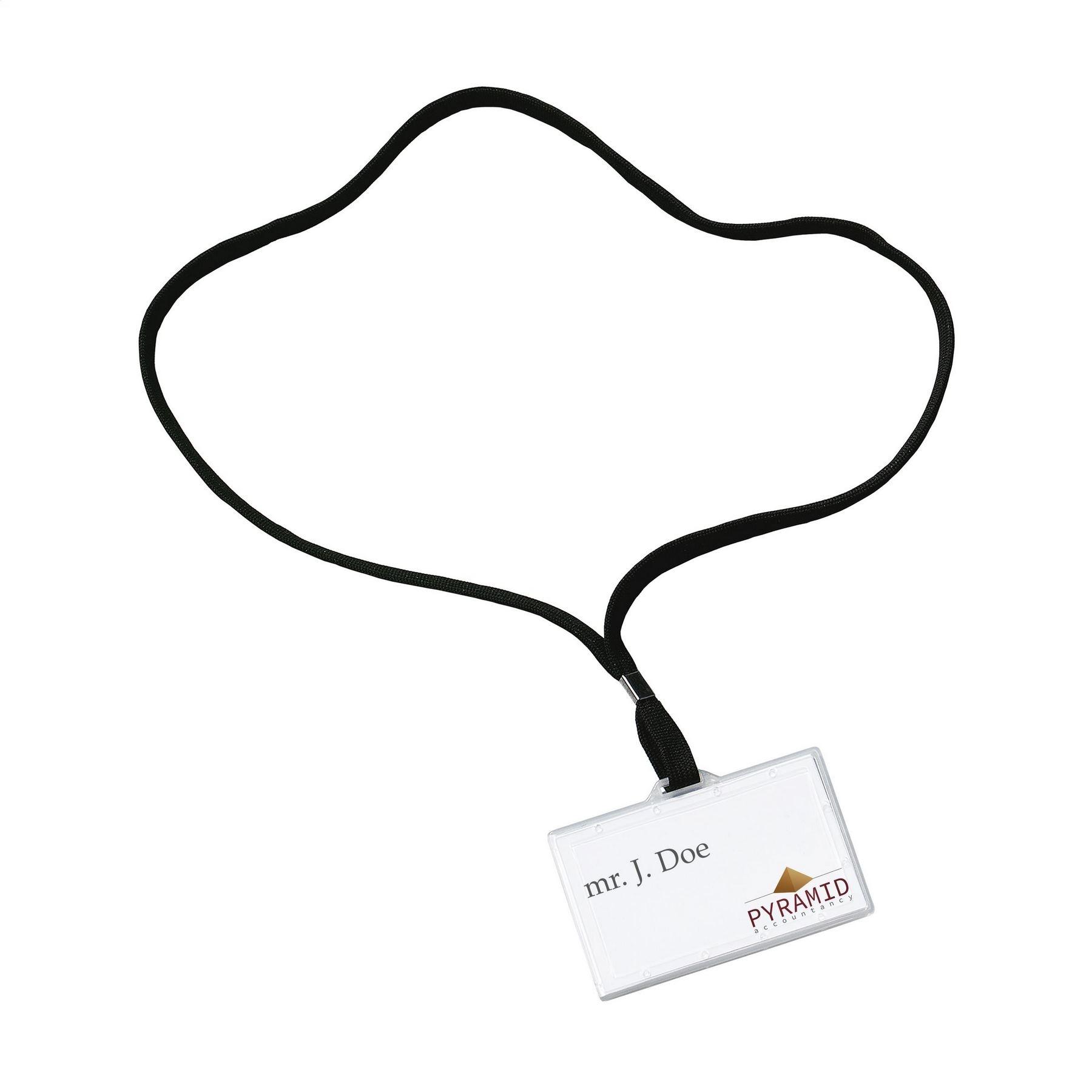 Porte-carte transparent avec cordelette (90 cm). Incl. carte blanche.