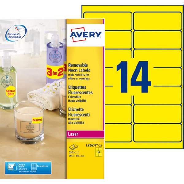 Boite de 350 étiquettes laser 99.1x38.1 jaunes fluo AVERY ref L7263-25 Vos messages ne passent plus inaperçus !
