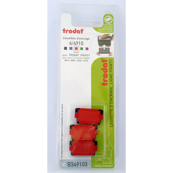 Boite de 3 cassettes rouges 6/4910 pour : Trodat 4810 / 4836 / 4910 / Ref.Trodat B349103