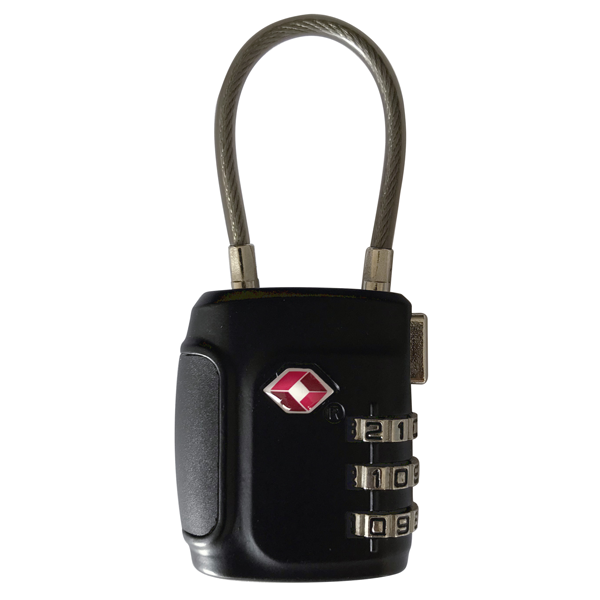 Le cadenas à combinaison TSA. Cadenas à combinaisons 3 chiffres avec câble. Dimensions ( H x L x P) : 88 x 35 x 135mm. Noir. <(><<)>ref SG24058>