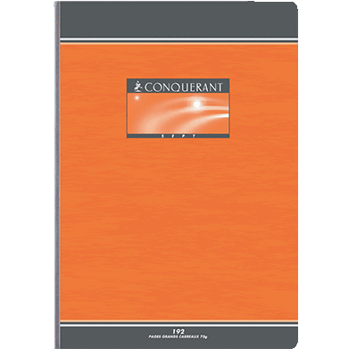 Cahier reliure brochure 17x22 cm 192 pages grands carreaux papier 70g NF 18 CONQUERANT SEPT
