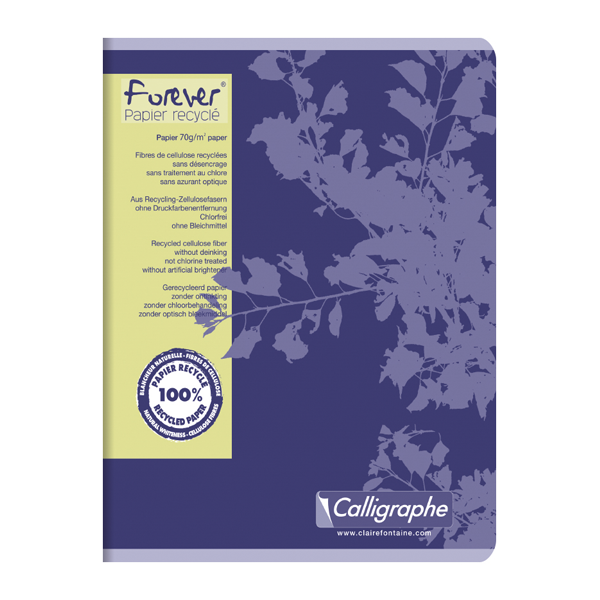Cahier piqué papier 70grs CLAIREFONTAINE *** Recyclé *** ( Fibres 100% recyclées. Blanchiment sans chlore ou auzurant optique )