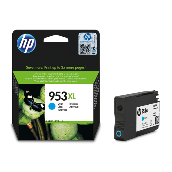 Cartouche jet d'encre cyan N°953XL pour imprimantes : HP Officejet Pro 7720 / HP Officejet Pro 7730 / HP Officejet Pro 7740 / HP Officejet Pro 8210 / HP Officejet Pro 8218 / HP Officejet Pro 8710 eAiO / HP Officejet Pro 8715 eAiO / HP Officejet Pro 8718 e