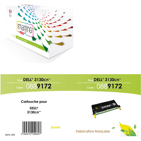 ***ANCIEN CODE ARTICLE 0888172*** Cartouche jaune compatible pour imprimante Dell 3130cn.- *capacité : 9.000 pages