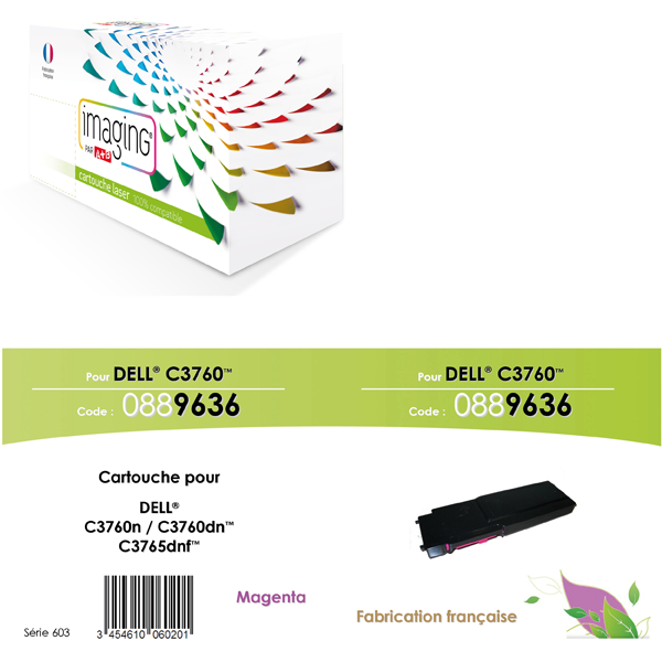 Cartouche compatible magenta pour imprimantes : Dell C3760N / C3760DN / Dell C3765DNF / Nbre de pages 9.000 <(><<)>Ref.Dell 40W00 / 593-11121>