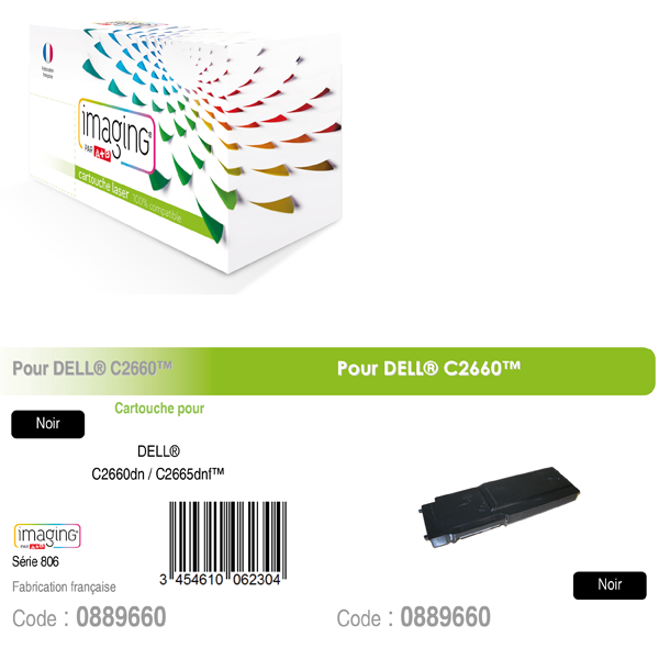 Cartouche toner noir compatible pour imprimantes : Dell C2660DN / Dell C2665DNF / Nbre de pages 6.000 <(><<)>Ref. Dell RD80W / 593-BBBU>