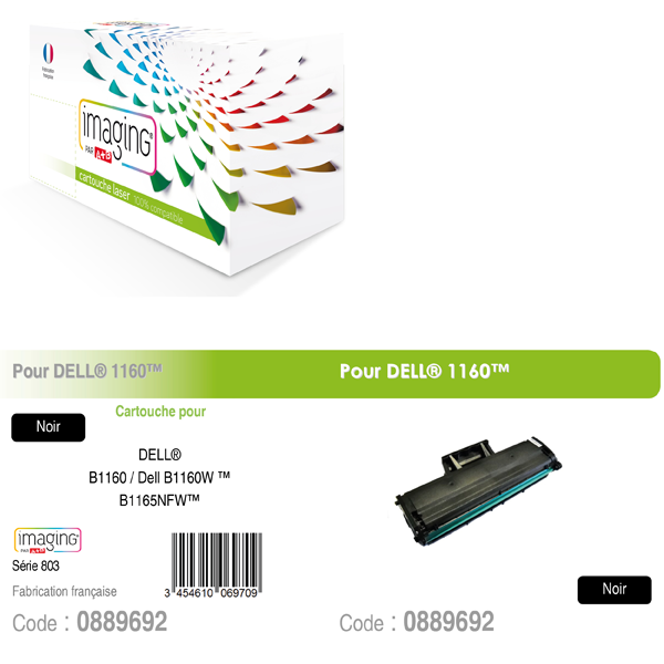 Cartouche compatible pour imprimantes : Dell B1160 / Dell B1160W / Dell B1165NFW. Nbre de pages 1.500 <(><<)>Ref. Dell HF44N / YK1PM / 593-11108 59311108 / B-1160 / B-1160W / B-1165NFW>