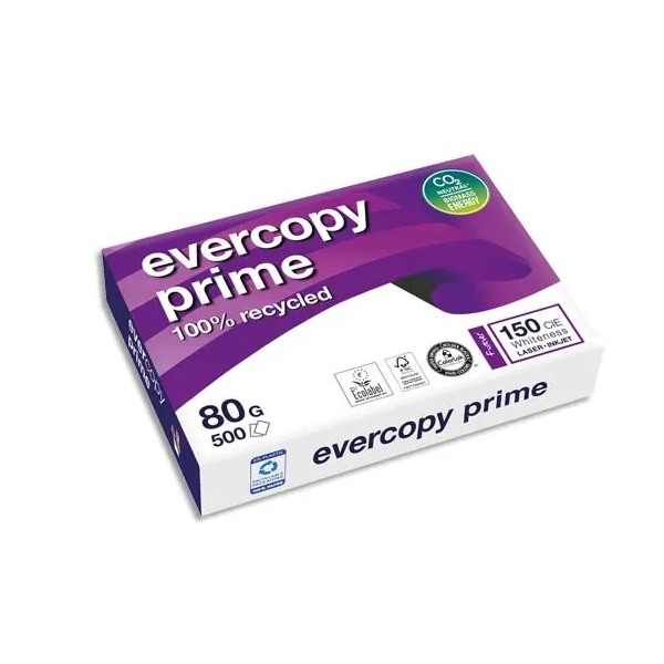 CLAIREFONTAINE EVERCOPY PRIME Un recyclé ultra-blanc pour toutes les utilisations ! Papier 100% recyclé multifonction. idéal pour la communication interne ou externe. Blancheur exceptionnelle 150 CIE. Opacité élevée. garantit des impresions recto/verso