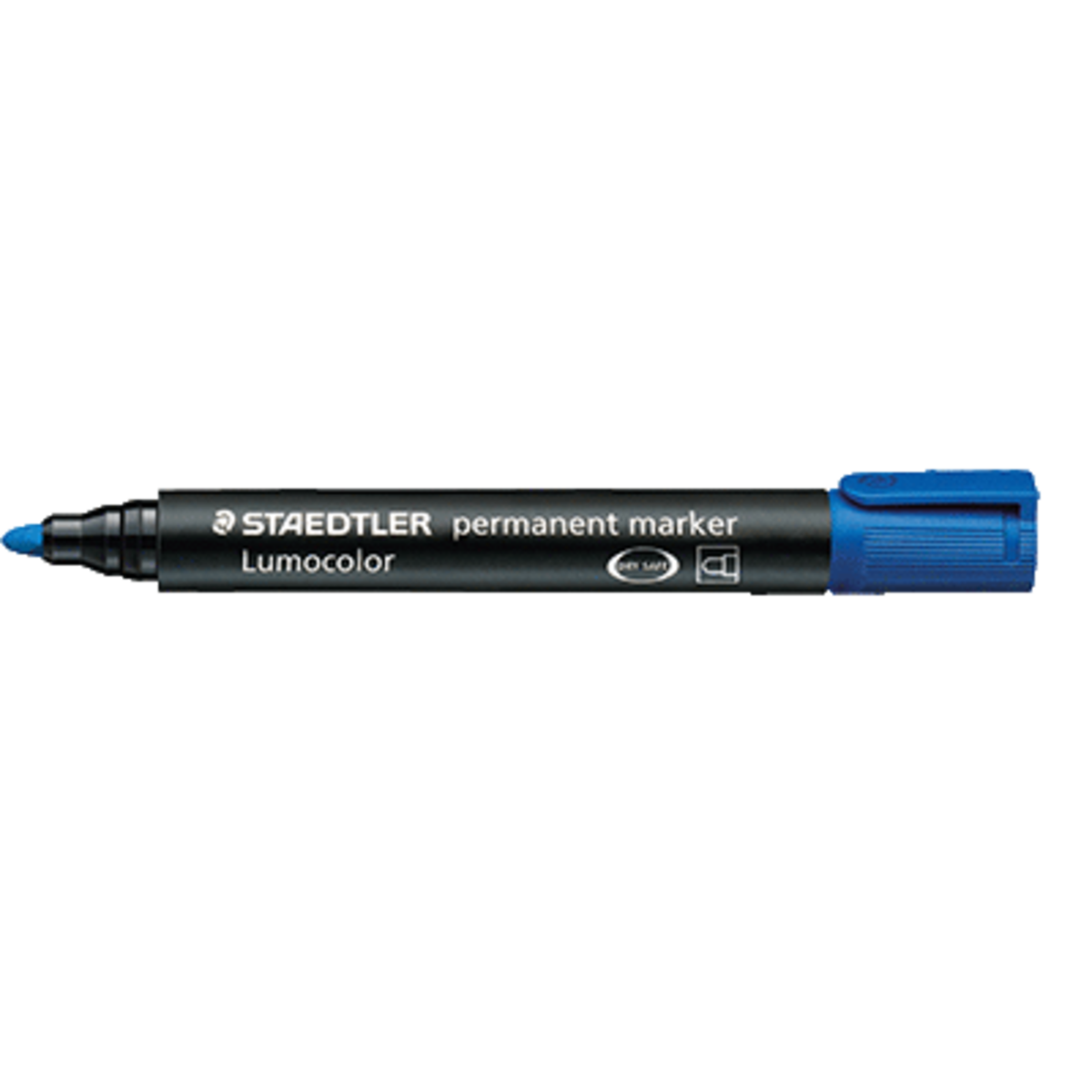 Marqueur permanent STAEDTLER LUMOCOLOR 352 Corps Plastique. Pointe ogive - Largeur d'écriture 2mm. Encre Drysafe permettant de laisser décapuchonné plusieurs jours sans sécher. Ne bave pas. résistant à l'eau et à la lu mière sur la plupart des surfaces. Q