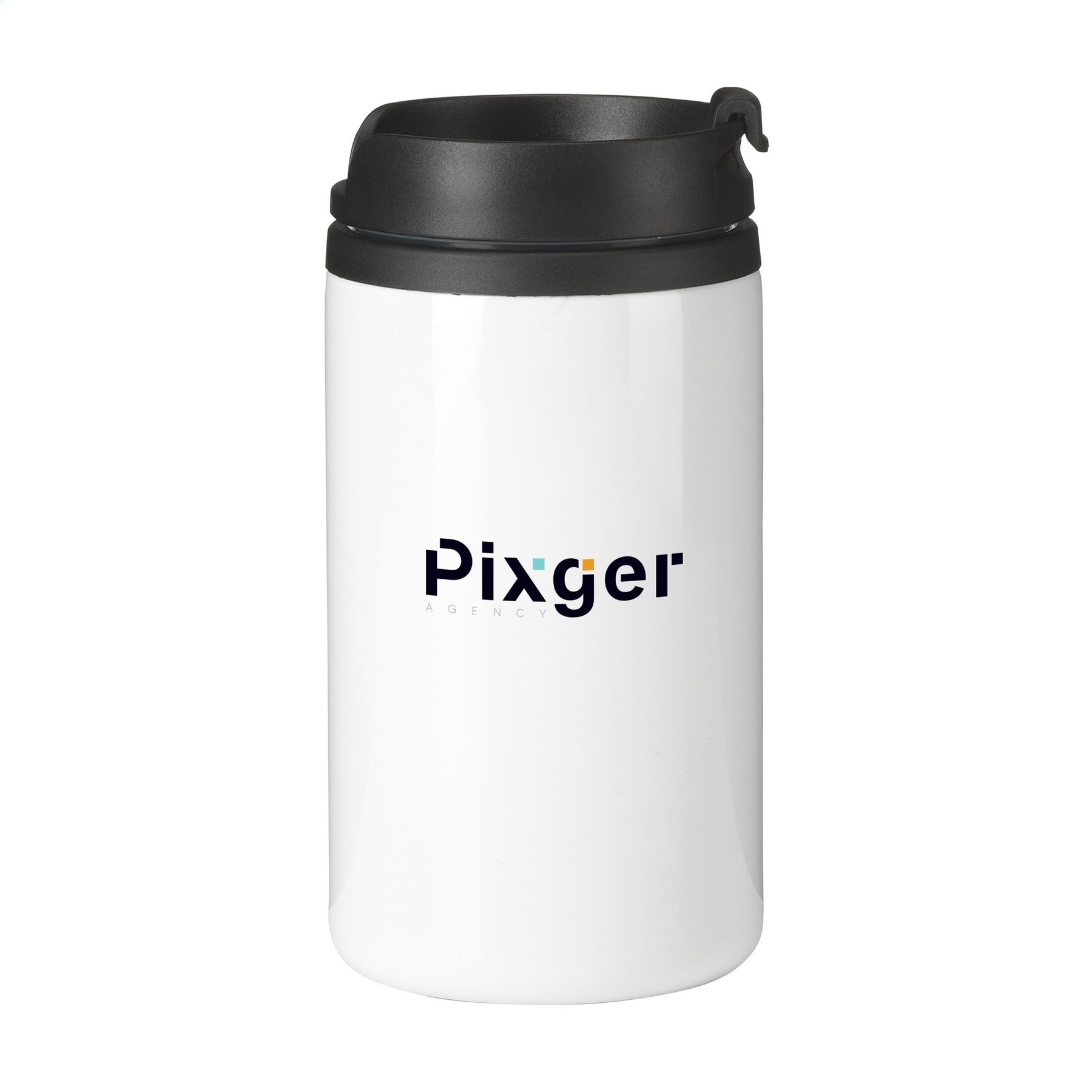 WoW! Mug isotherme à double paroi en acier inoxydable recyclé. Avec paroi intérieure en plastique, couvercle à vis et ouverture à clic. Dessous antidérapant. Certifié RCS. Matière recyclée totale : 46%. Capacité 300 ml. L'inox peut être recyclé de nombreuses fois tout en conservant en grande partie la qualité du matériau. En utilisant de l'acier inoxydable recyclé, on a besoin de moins de nouvelles matières premières. Cela signifie moins de consommation d'énergie et moins d'utilisation d'eau. Un choix responsable. Chaque article est fourni dans une boite individuelle en papier kraft marron.