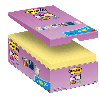 Pack de 16 blocs 7.6x12.7cm Avantage Super Sticky Post-it jaune pastel unis. Bloc de 90 feuilles. Pas de film individuel.