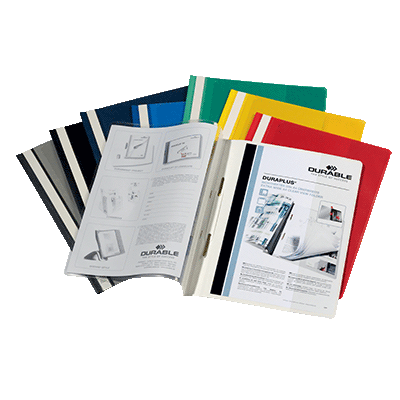 Paqt de 25 chemises de présentation personnalisable à lamelles DURABLE coloris assortis ( rouge. bleu. vert. blanc. noir ).
