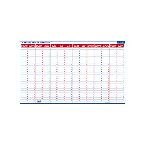 Planning Geant Perpetuel Effacable 60x80cm. 14 mois recto. Planning effaçable.