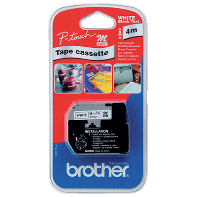 Ruban BROTHER MK221 Noir/Blanc 9mm pour titreuses : PTouch PT55 / PT60 / PT65 / PT75 / PT85 / PT110 / BB4 / PT90.