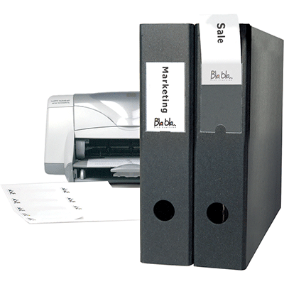 Porte-étiquettes adhésifs et planche d'étiquettes imprimables.