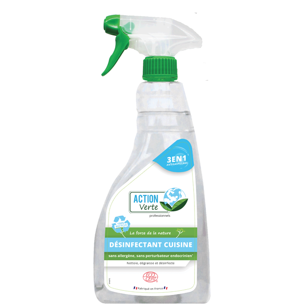 Le spray de 750ml de désinfectant cuisine 100% d’origine naturelle Nettoie. détartre. dégraisse et désinfecte sans laisser de traces. Désinfecte : bactéricide et levuricide. Sans allergène. sans perturbateur endocrinien. sans colorant. Sans rinçag