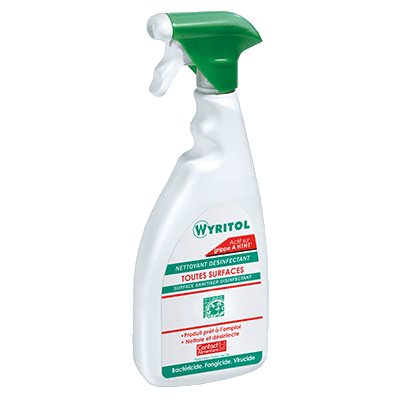 Spray nettoyant desinfectant moussant toutes surfaces prêt a l'emploi. Elimine 99.9% des bacteries. Compatible contact alimentaire. Bacteri- de. fongicide. virucide. Vendu en aérosol de 250ml