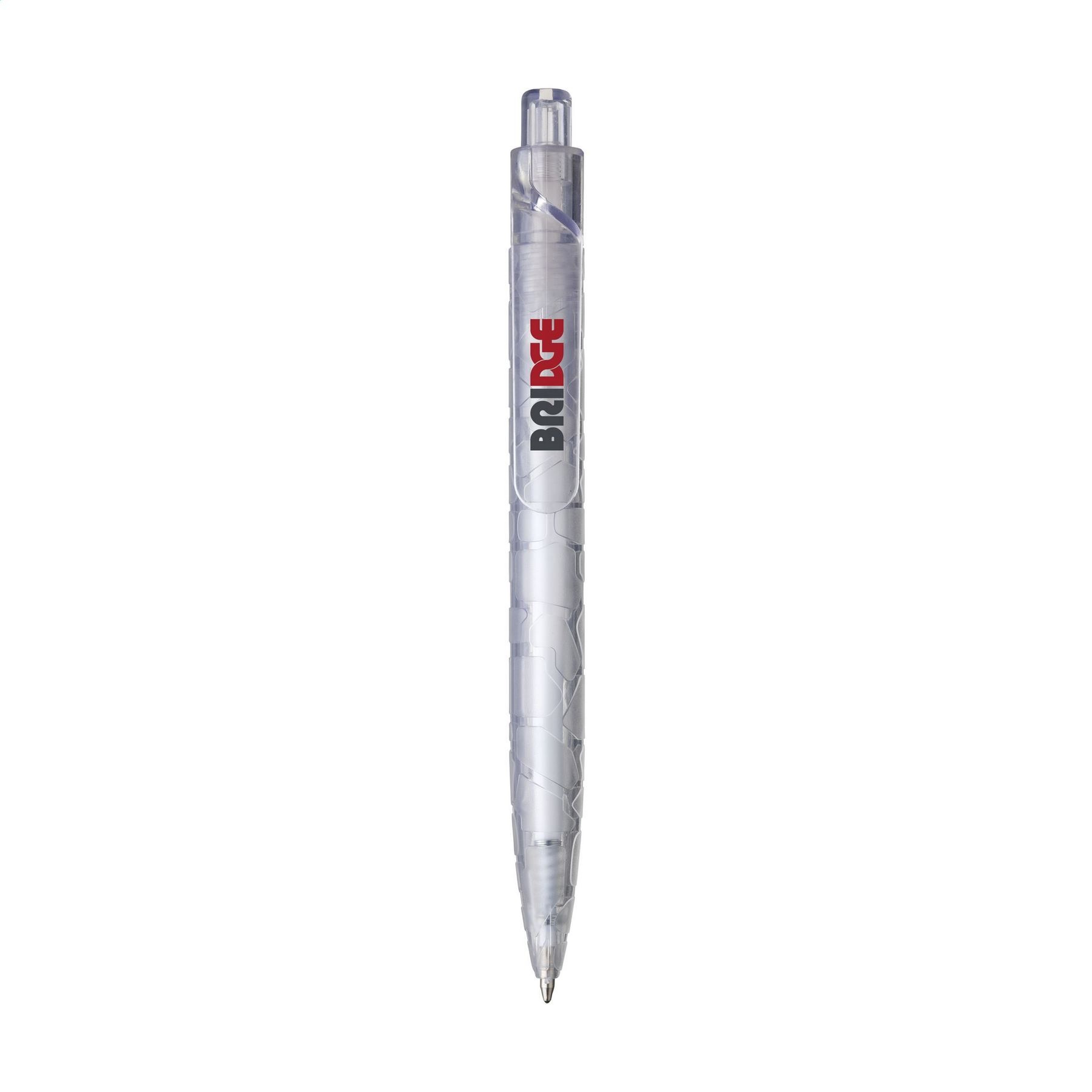 WoW! Stylo à bille en RPET, presque entièrement fabriqué à partir de bouteilles en PET recyclées. Le support est muni d’un motif en relief distinctif. Le clip royal convient parfaitement pour un marquage et se démarque immédiatement. Encre Bleue.