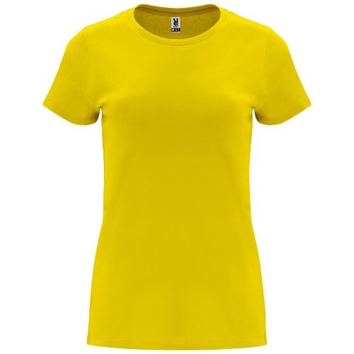 T-shirt ajusté à manches courtes pour femme. Col rond côtelé 1x1. Coutures recouvertes renforcées au col. Étiquette détachable.