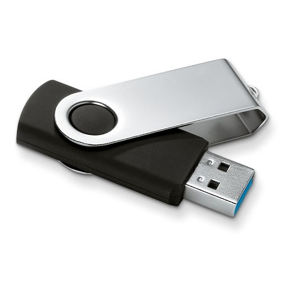 Mini format pour cette clè USB recouverte d'une protection métallique qui se tourne en début d'utilisation. Les prix incluent un marquage 2 couleurs.
